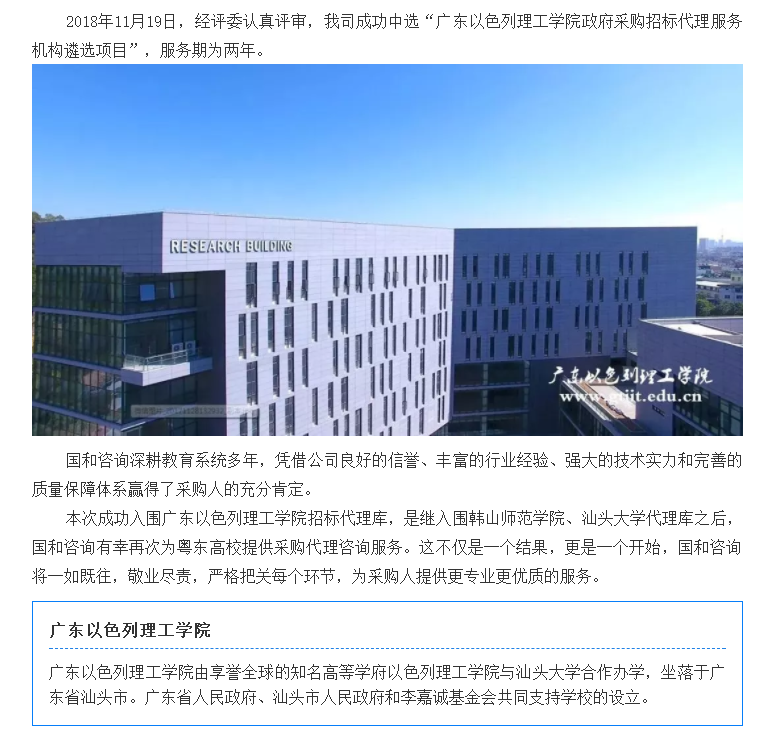 我司成功中選“廣東以色列理工學(xué)院政府采購(gòu)招標(biāo)代理服務(wù)機(jī)構(gòu)遴選項(xiàng)目”