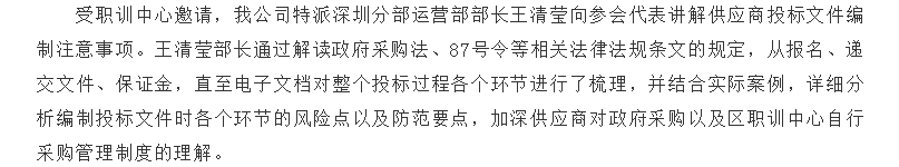 國和咨詢深圳分部參加職訓(xùn)中心舉辦的招標(biāo)采購業(yè)務(wù)培訓(xùn)會(huì)