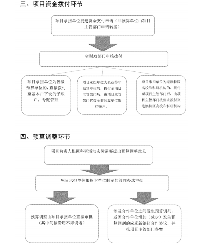 第九條 省財(cái)政部門負(fù)責(zé)制訂省級(jí)財(cái)政科研項(xiàng)目資金管理辦法,根據(jù)項(xiàng)目主管部門編制的資金分配方案及時(shí)撥付項(xiàng)目資金,不直接參與科研項(xiàng)目審批、管理,具體職責(zé)包括: