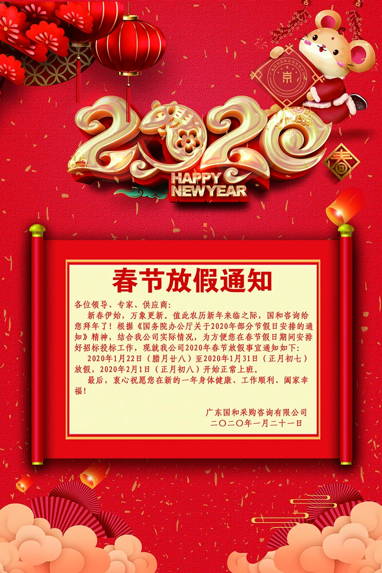 關(guān)于2020年春節(jié)放假安排的通知