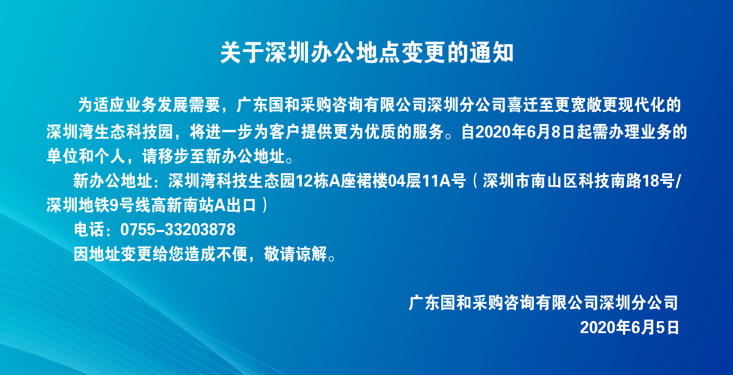 關(guān)于深圳辦公地點(diǎn)變更的通知