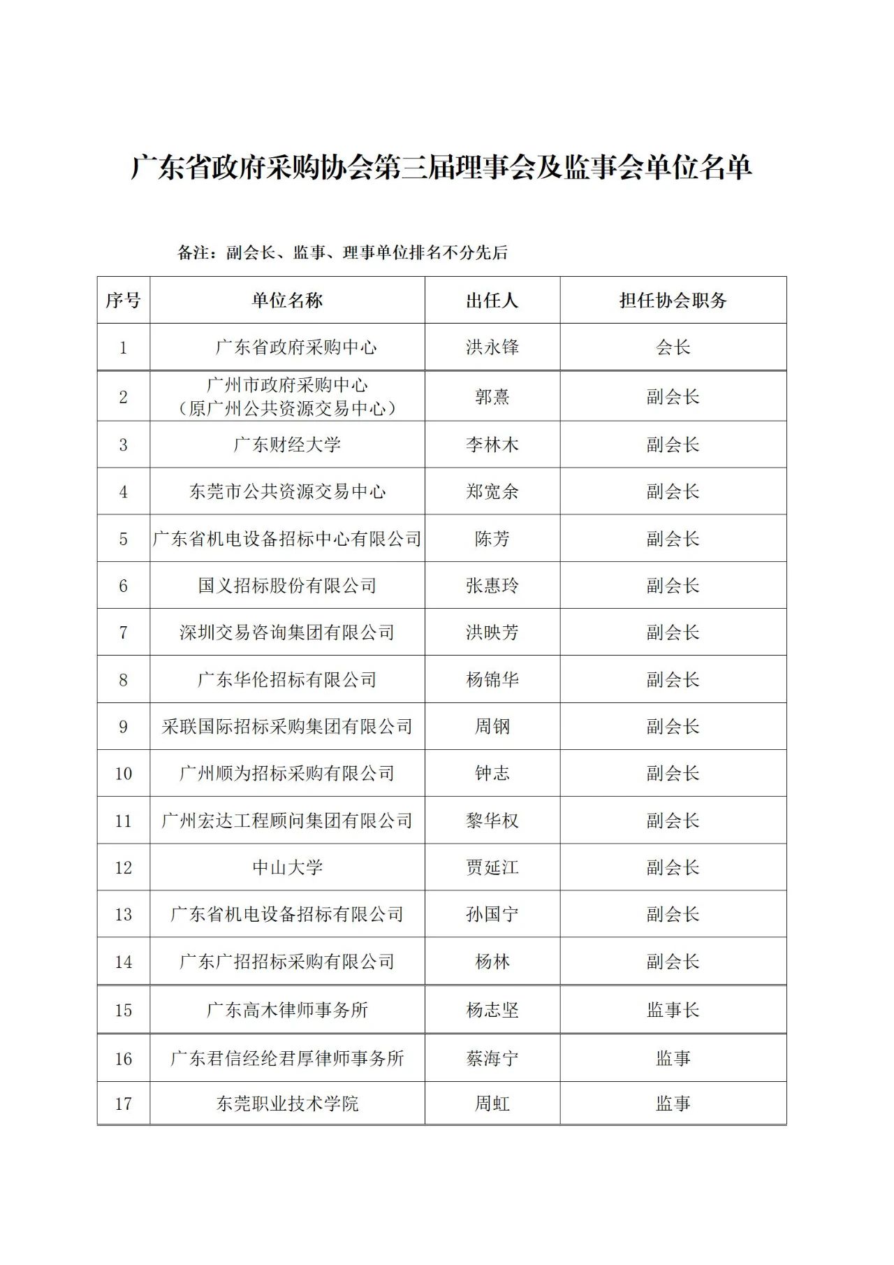 會(huì)議審議并通過了《廣東省政府采購(gòu)協(xié)會(huì)第二屆理事會(huì)工作報(bào)告》《廣東省政府采購(gòu)協(xié)會(huì)第二屆理事會(huì)財(cái)務(wù)報(bào)告》《廣東省政府采購(gòu)協(xié)會(huì)第二屆監(jiān)事工作報(bào)告》《廣東省政府采購(gòu)協(xié)會(huì)章程(修訂草案)》,通過會(huì)員無記名投票選舉產(chǎn)生了廣東省政府采購(gòu)協(xié)會(huì)第三屆會(huì)長(zhǎng)、副會(huì)長(zhǎng)、理事、監(jiān)事長(zhǎng)、監(jiān)事單位,并由新一屆理事會(huì)成員表決通過了聘任新一屆協(xié)會(huì)專職秘書長(zhǎng)。